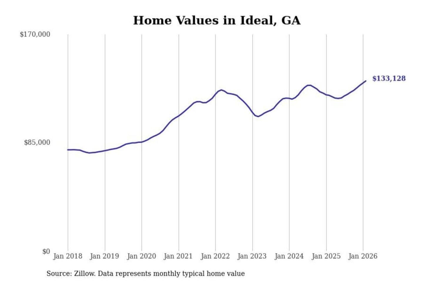 - Typical home value: $133,128