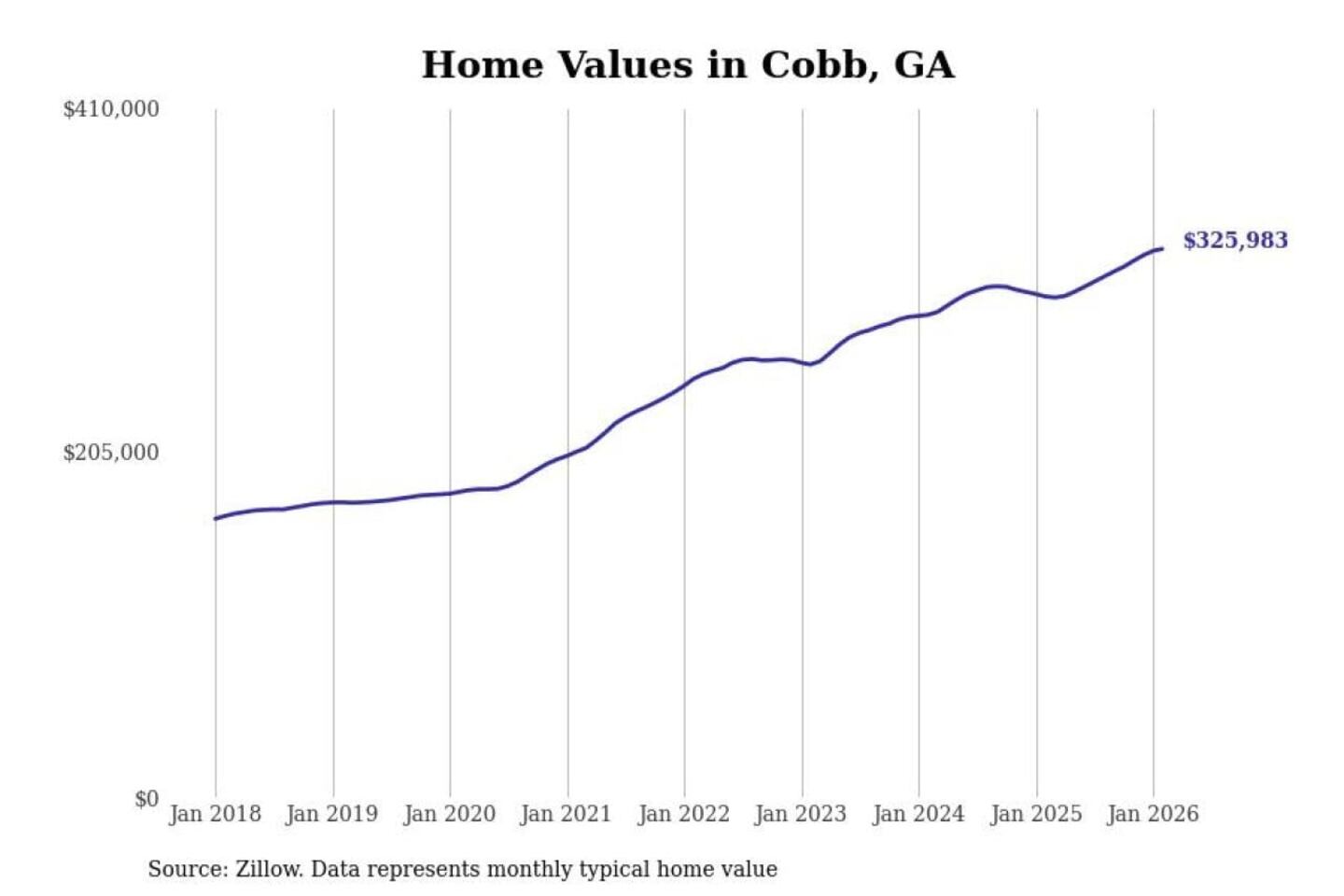 - Typical home value: $325,983