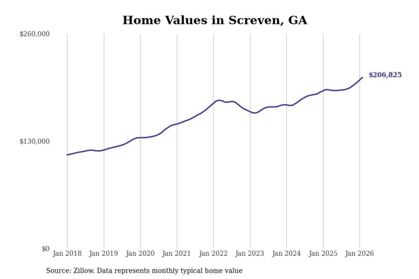- Typical home value: $206,825