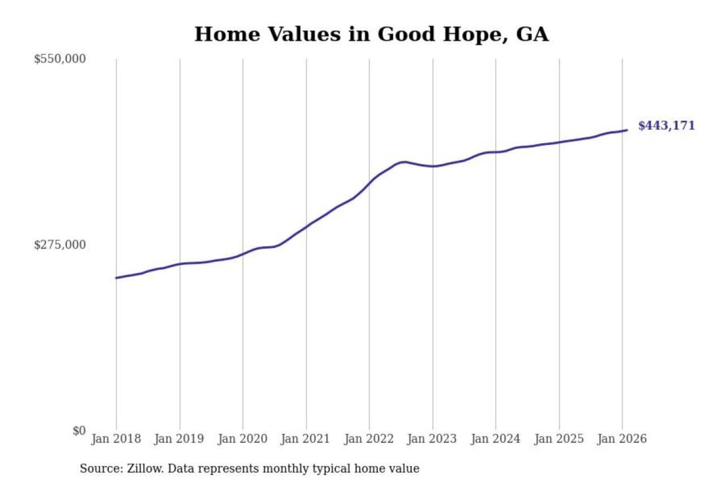 - Typical home value: $443,171